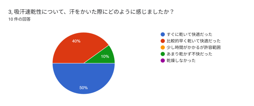 • 汗がすぐに乾いて快適だったし、お客様の前で汗染みの不快感を与えない